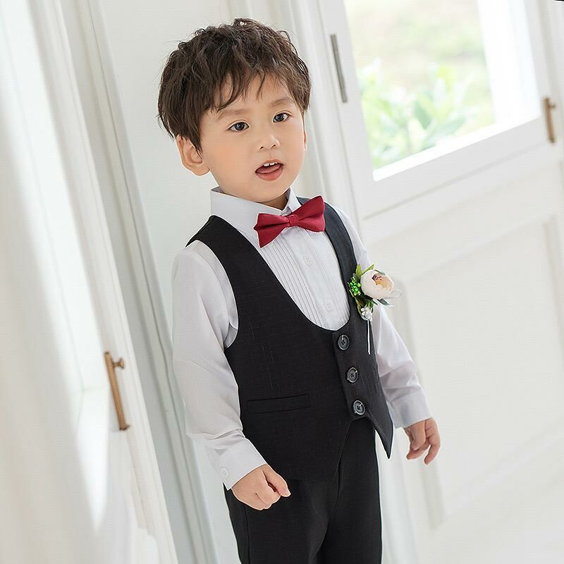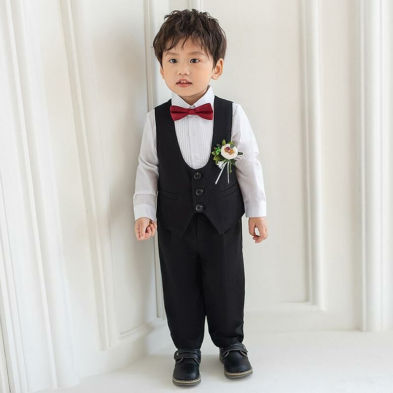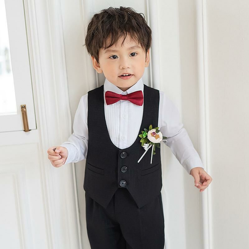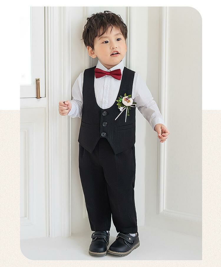 ✩ 5件套裝: 長袖恤衫+西裝背心+西裝長褲+煲呔+胸花 ✩