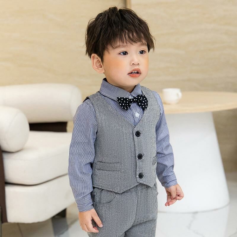 ✩ 4件套裝: 長袖恤衫+西裝背心+西裝長褲+煲呔 ✩