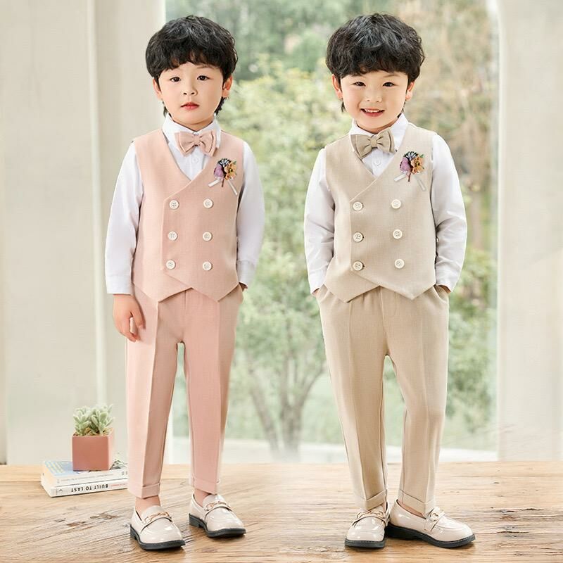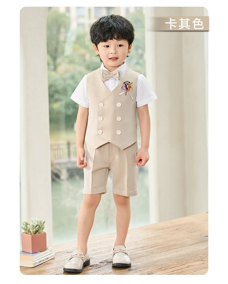 ✩ 5件套裝: 短/長袖恤衫+西裝背心+西裝短/長褲+煲呔+胸花 ✩