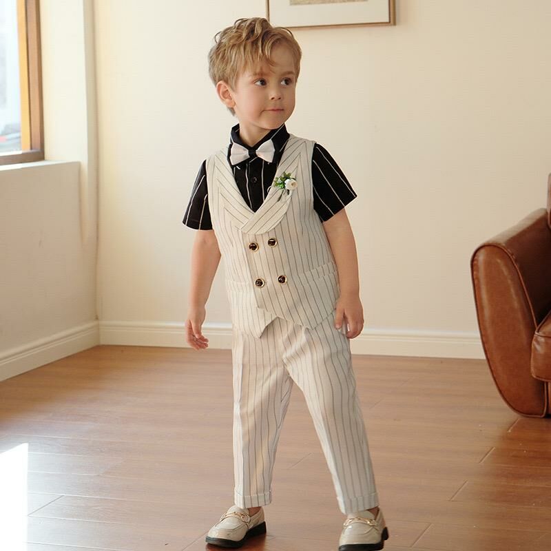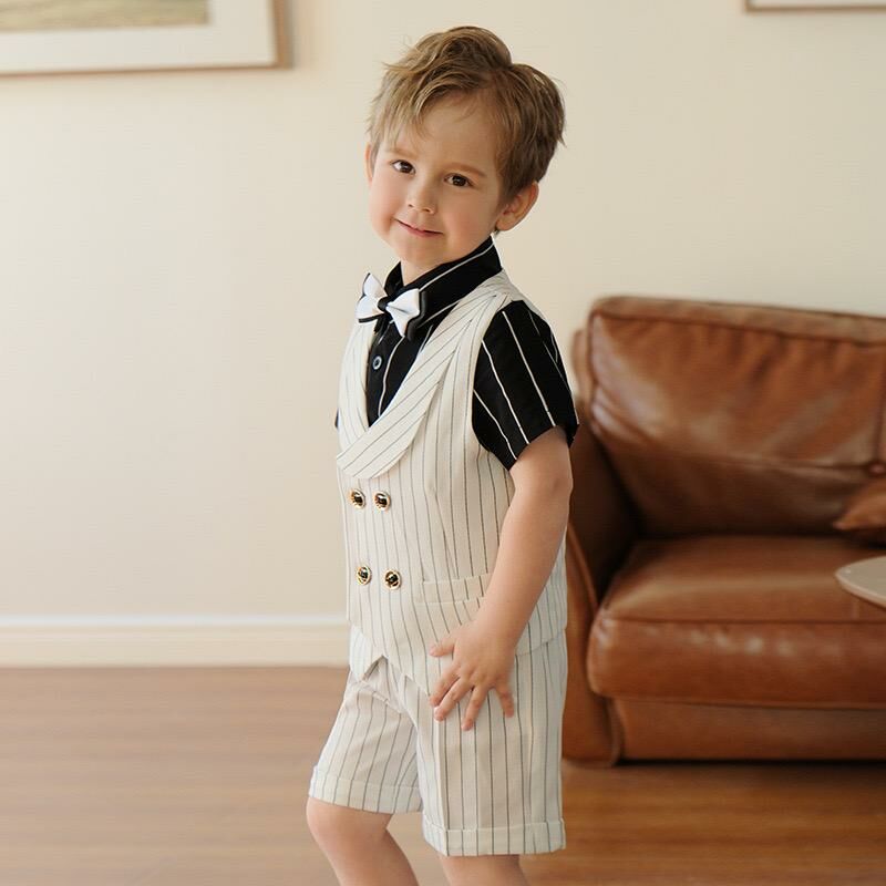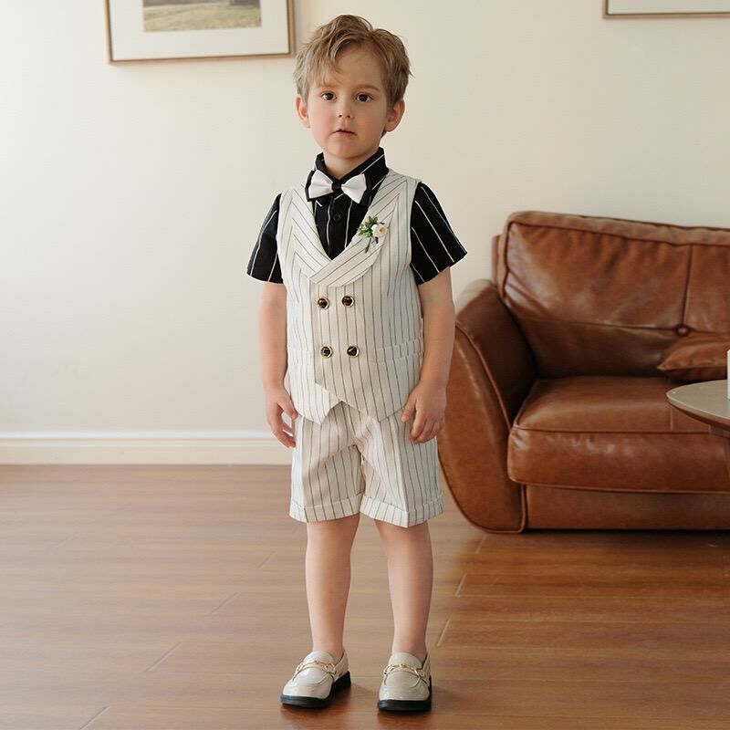 ✩ 5件套裝: 短袖恤衫+西裝背心+西裝短/長褲+煲呔+胸花 ✩
