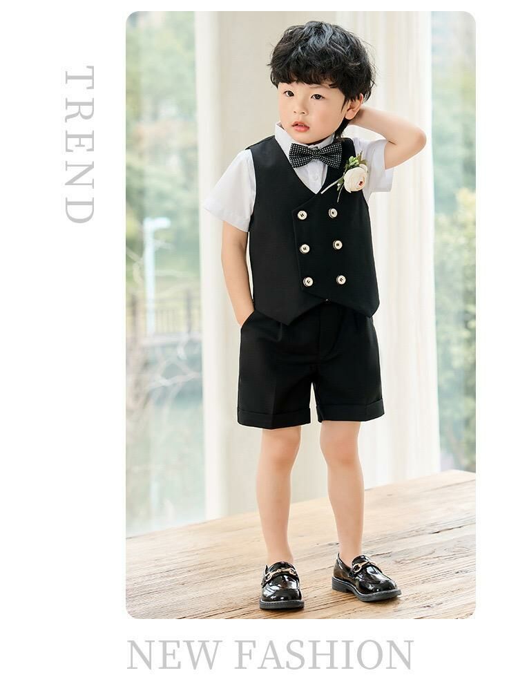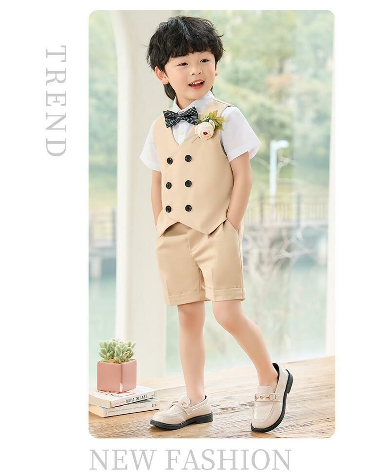 ✩ 5件套裝: 短袖恤衫+西裝背心+西裝短褲+煲呔+胸花 ✩