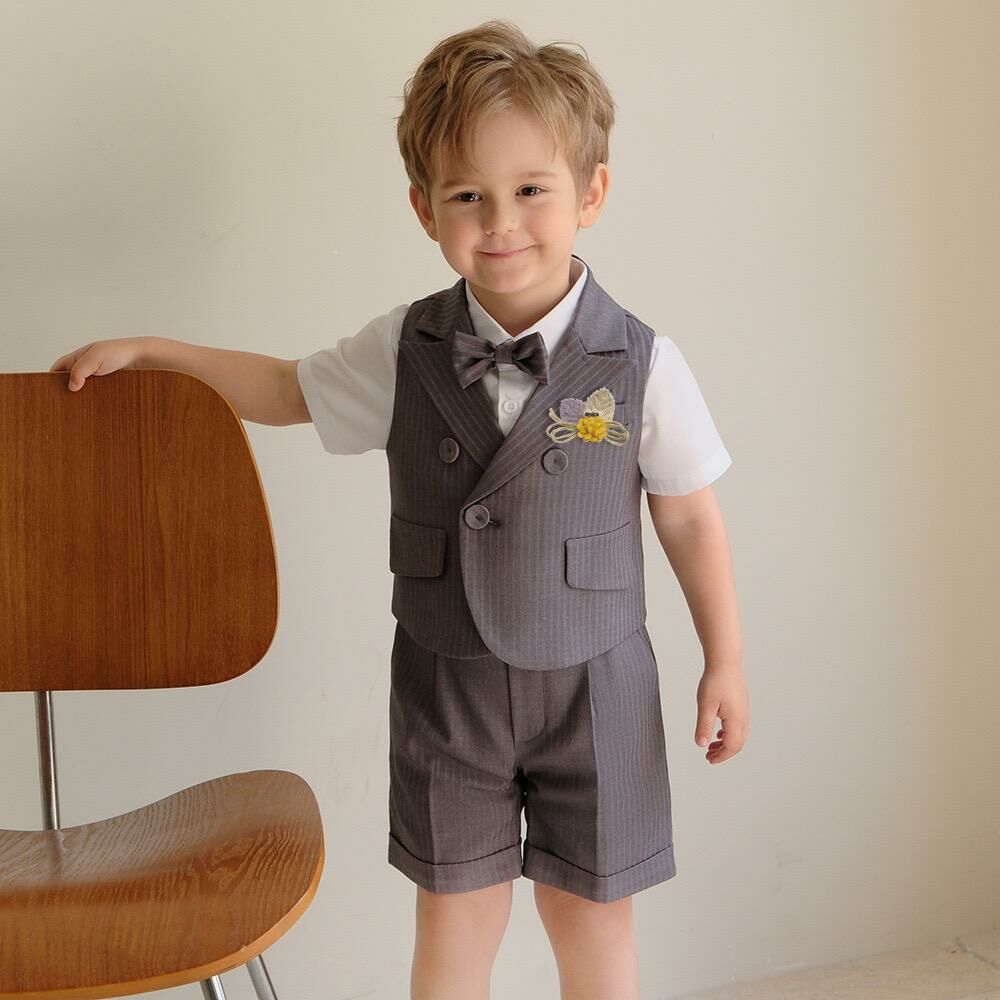 ✩ 5件套裝: 短袖恤衫+西裝背心+西裝短褲+煲呔+胸花 ✩