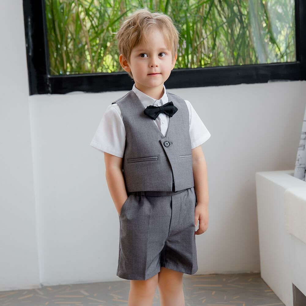 ✩ 5件套裝: 短袖恤衫+西裝背心+西裝短/長褲+煲呔 ✩