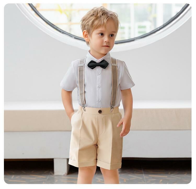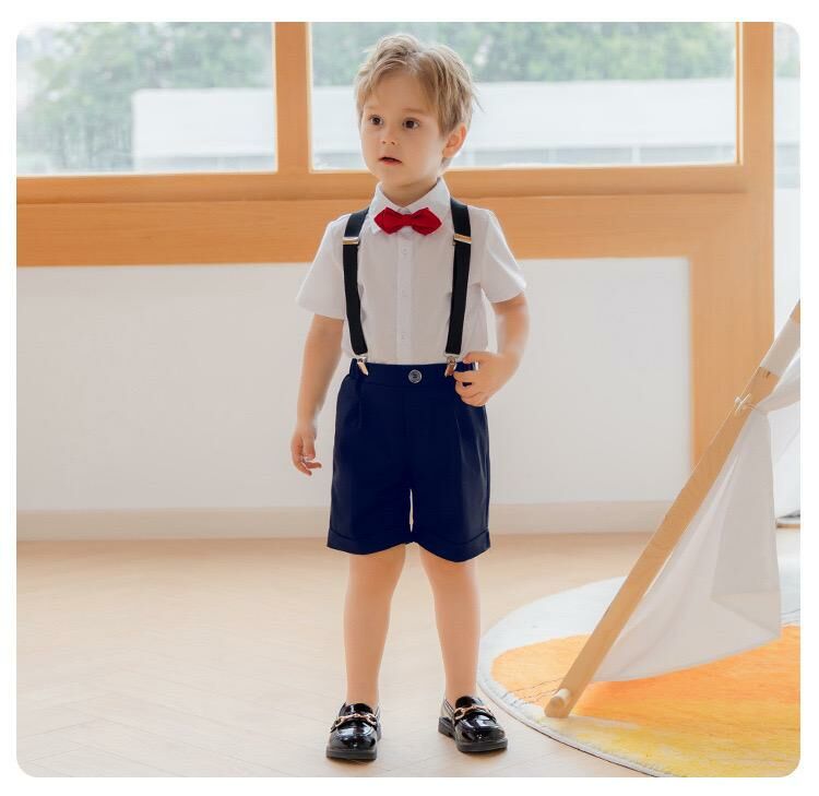 ✩ 4件套裝: 短袖恤衫+西裝短褲+煲呔+吊帶 ✩