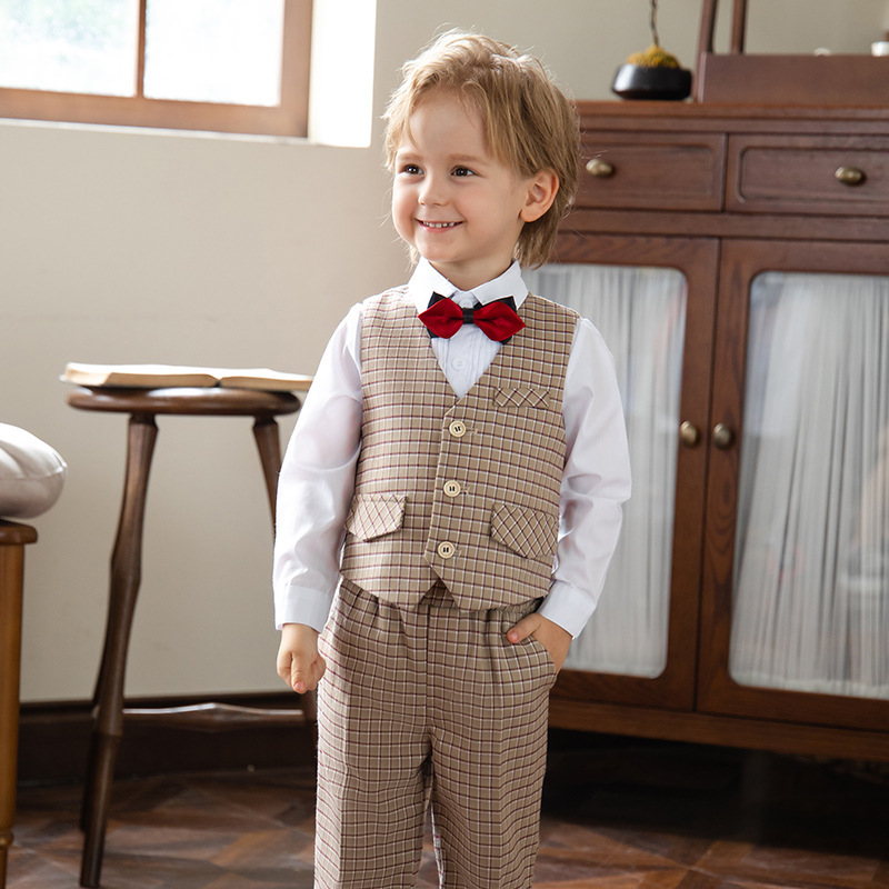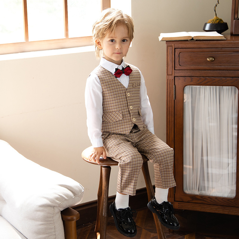 ✩ 4件套裝: 長袖恤衫+西裝背心+西裝長褲+煲呔 ✩